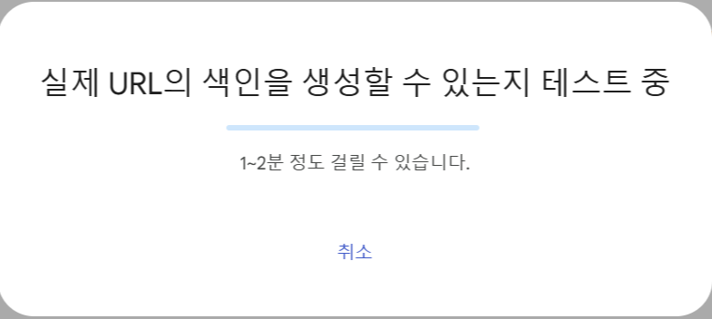 3. 실제 URL의 색인을 생성할 수 있는지 테스트 중이라는 팝업 후 요청 제출 중이라는 팝업이 뜹니다.