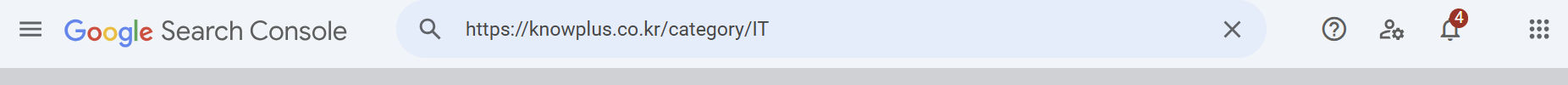 1. 아래. 오류 사유가 발생한 페이지에 들어가서 해당 주소를 복사하여, 상단 검사창에 붙여 넣기 합니다. 저는 https://knowplus.co.kr/category/IT라는 주소를 복사하였습니다.